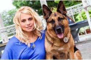 Кажется, что она просто фотографируется со своим псом. Но ты только посмотри, что у нее в руке...