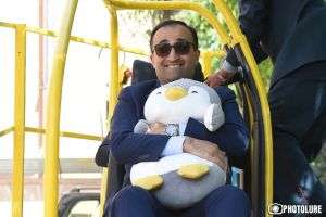 Глава Минздрава Армении апробировал краш-тест с плюшевым пингвином (Video)