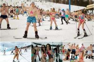 Рекорд России по массовому спуску в купальниках установили в Шерегеше (Photo, Video)