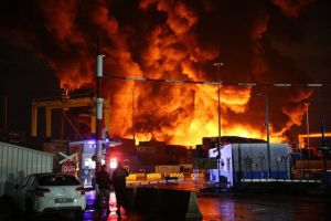 ар в порту Искендеруна, который начался после землетрясения, не удается потушить до сих пор