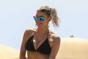 Грудь певицы Ферджи чуть не вывалилась из бикини на глазах папарацци (Фото)