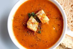 Согревающий крем-суп из томатов с курицей