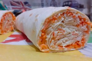30 минут на кухне: сочный рулет из лаваша с крабовыми палочками и морковью по-корейски
