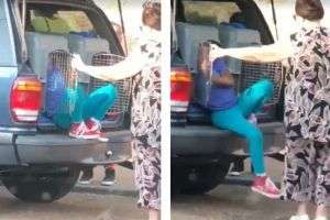 ю женщину, которая перевозила своих внуков в собачьих клетках (Video)