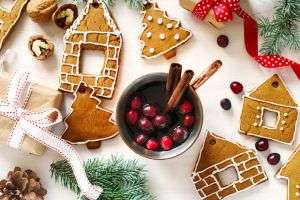 Новогодние сладости: пряничный домик, снеговик из безе и полено