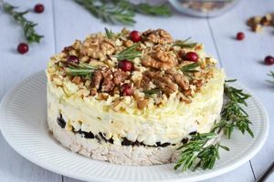 Салат с курицей гриль, яйцами и овощами под майонезом