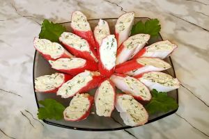Рулетики из крабовых палочек с чесноком и сы
