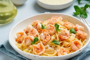Паста с креветками и сы