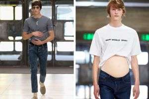 Հղի տղամարդիկ քայլում էին բեմահարթակով՝ ձեռքերով բռնած իրենց փորիկները