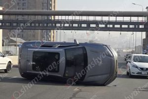 «Toyota»-ն Աշտարակի խճուղուց դեպի Եղվարդի խճուղի ընթանալիս բшխվել է երկաթե արգելապատնեշին, մի պտույտ շրջվել և մասամբ հայտնվել երթևեկելի գոտուց դուրս
