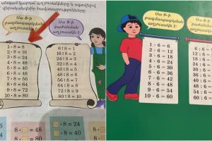 Սա Երևանում վերակառուցված դպրոցներից մեկի պատին է փակցված. հայոց աղավաղված ու նիկոլի գրած պատմությո՞ւնը պիտի լավ սովորի երեխան, թե՞ Ցեղասպանության ուրացումը