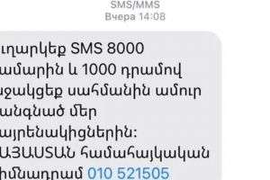 Ժող, սա իսկական hիմնադրամի գումար հավաքելու SMS-ն ա. ճշտված է հիմնադրամի տնօրենից