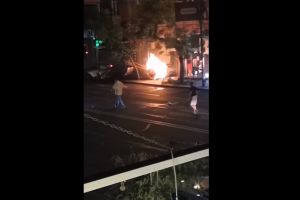 Բացառիկ կադրեր. Ինչպես է Ամիրյան փողոցում վթարից հետո այրվում ավտոմեքենան (Video)