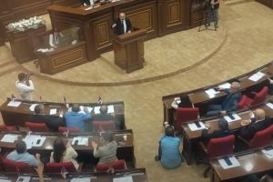 Փաշինյանի պոռթկման պահին ընդդիմադիրները ձեռքերով հարվածում են սեղանին, ՔՊ-ականները՝ ծափահարում