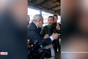 Փաշինյանի անվտանգության աշխատակիցը հրում է NEWS.am–ի լրագրողին, հարվածում հեռախոսին