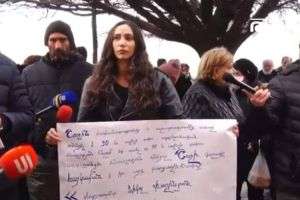 Սփյուռքից փախչող սփյուռքի գործերի հանձնակատարը պատուհանի անկյունից հետևում է ԱԳՆ-ի դիմաց հավաքված ցուցարարներին