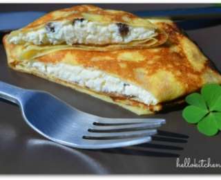 Այդ ընթացքում պատրաստում ենք միջուկը` իրար ենք խառնում կաթնաշոռը, շաքարի փոշին ու չամիչը