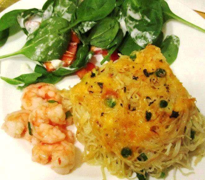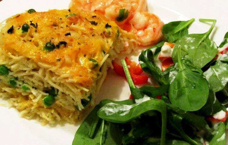 400 գ սպագետին խաշել տուփի վրա գրվածին համաձայն, ջրքամել, ջրից կես բաժակ պահել: Թավայի մեջ 4 պճեղ մանր կտրատած սխտորը տապակել` անընդհատ խառնելով, որ չկարմրի, ավելացնել 150 գ սառեցրած կանաչ ոլոռ, կարող եք բեկոն կամ հավի միս էլ ավելացնել, 2-3 րոպե տապակել, ավելացնել 400 մլ սերուցք, խառնել և հատ-հատ ավելացնել 4 ձու` անընդմեջ խառնելով, ավելացնել 150 գ քերած պանիր, աղ, սև պղպեղ, այս զանգվածին միացնել սպագետին, խառնել, վերցնել կրակից: Զանգվածը լցնել ջեռոցի տապակի մեջ, ավելացնել չորացրած ուրց կամ կանաչ ռեհան, ծածկել քերած պանրով: 20 րոպեով տեղափոխել նախապես 180 (350F) աստիճան միացրած ջեռոց: Ես օգտագործել եմ դեղին գույն ունեցող պանիր: Շատ համեղ է ծովամթերքի հետ: Բարի ախորժակ!!! Հարգանքներով՝ Նինա Մինասյան