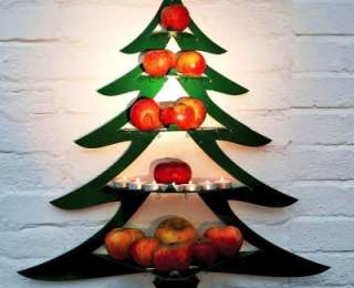Wall christmas tree too cute! There are hooks to hang ornaments on the underside of the shelves and room underneath to place presents!