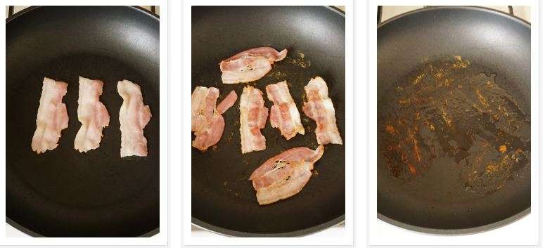Թավայի մեջ կարմրացնում ենք բեկոնը և ձուն լցնում վրան
