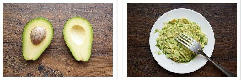 Մեջտեղից կիսում ենք ավոկադոն և գդալով հանում փափուկ մասը