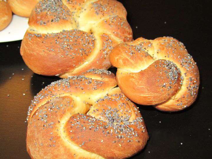 200 մլ գոլ կաթի մեջ լուծել 7 գ խմորիչ և 1 ճ. գդալ շաքարավազ, թողնել 10 րոպե, որ խմորիչը սկսի գործել: 2 ձուն 80 գ շաքարավազով հարել, ավելացնել խմորիչով կաթը, մի պտղունց աղ: Ավելացնել 60 գ փափուկ կարագ, լավ հարել: Քիչ-քիչ ավելացնել մոտ 380 գ ալյուր: Խմորը մի փոքր կպչուն է, բայց հեշտությամբ պոկվում է ամանի պատերից, շատ ալյուր չավելացնեք. բուլկիները կոշտ կստացվեն: Խմորով ամանը փակում ենք և ՈՒՇԱԴՐՈՒԹՅՈՒՆ՝ տեղափոխում սառնարան մինչև առավոտ: Դուք քնում եք, իսկ խմորը հասունանում է սառնարանում: Առավոտյան բարձրացած խմորից կտորներ պոկել, յուրաքանչյուր կտորին պարանի տեսք տալ, 2 պարանները միացնել, միահյուսել, ծայրերն