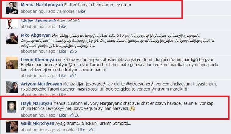 Այսօրվա ֆեյսբուքյան մենամարտերի հերոսներն էլ Կարգին Հայկոն ու Մենուա Հարությունյաննն են: