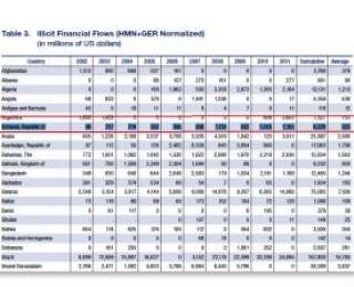 Global Financial Integrity հետազոտական կենտրոնի ներկայացմամբ, տասը տարվա ընթացքում Հայաստանից ապօրինի եղանակով դուրս է բերվել ավելի քան 6.2 միլիարդ դոլար: «Ազատություն» ռ/կ-ի թարգմանությամբ ներկայացված նյութում նշվում է, որ «Ապօրինի ֆինանսական հոսքերը զարգացող երկրներից․ 2002-2011» վերնագրված զեկույցը, որն օրերս է հրապարակվել, չորրորդն է Վաշինգտոնում գործող հեղինակավոր կենտրոնի նմանատիպ զեկույցների շարքում: Ըստ զեկույցի 2002-2011թթ․ ընթացքում Վրաստանից դուրս է հանվել 4.5 միլիարդ դոլար (թեև Վրաստանի տնտեսությունը ավելի մեծ է հայաստանյանից): Ադրբեջանից հանվել է ավելի քան 17 միլիարդ դոլար, մոտ 2.7 անգամ շատ Հայաստանից, սակայն Ադրբեջանի տնտեսության ծավալները որոշ հաշվարկներով մոտ 7 անգամ գերազանցում է: Ուշագրավ է, որ ըստ զեկույցի, ֆինանսական ապօրինի արտահոսքը Հայաստանից կտրուկ ավելացել է 2007թ․-ից և մինչև 2011թ․-ը մեր երկրից տարեկան ապօրինի կերպով դուրս է հանվել մոտ 1 միլիարդ դոլար:
