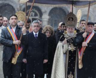 Նախագահականի կայքում զետեղված հաղորդագրությունն այն մասին, որ Սերժ Սարգսյանը ներկա է գտնվել Սուրբ Ծննդյան և Աստվածահայտնության տոնի առթիվ մատուցված պատարագին, պարունակում է նաև լուսանկարներ, որտեղ պատկերված է, թե ինչպես են դերասաններ Տիգրան Ներսիսյանը և Արմեն Էլբակյանը հովանոց պահում Սերժ Սարգսյանի և կաթողիկոսի գլխավերևում: Լուսանկարները բուռն քննարկումների պատճառ են դարձել Facebook սոցիալական ցանցերում: Օգտատերերը խիստ քննադատության են ենթարկել դերասաններին՝ հիմնականում ընդգծելով, որ անթույլատրելի է երկրում առկա բազմաթիվ խնդիրների հիմնական պատճառ հանդիսացող ու ժողովրդի կողմից չընտրված Սերժ Սարգսյանին ծառայելը: NewsBook-ի հետ զրույցում Արմեն Էլբակյանն ասաց, որ ինքը չի կարդացել Facebook-ում իրենց հասցեին հնչեցված քննադատությունը, քանի որ այդ գրառումներն իրեն չեն հետաքրքրում: «Նախ, դա կոչվում է ամպհովանի, ոչ թե հովանոց: Երկրորդ՝ ինչ ուզում են, թող գրեն: Ինձ դա չի հետաքրքրում»,- ասաց Էլբակյանը: Հարցին՝ արդյո՞ք ամպհովանին Սարգսյանի և կաթողիկոսի գլխավերևում պահելը Էլբակյանի ցանկությունն է եղել, թե՞ իրեն նախօրոք առաջարկել են անել դա, Էլբակյանը պատասխանեց, որ իրեն առաջարկել են, ինքն էլ համաձայնել է, այլ մեկնաբանություններով էլ հանդես գալ չի ցանկանում: