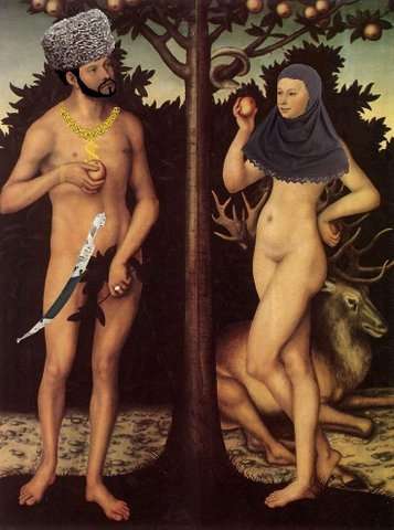 Однако, открытие, которое было сделано недавно, доказывает, что Адам и Ева самые что ни на есть азербайджанцы. Была найдена древняя азербайджанская (албанская) рукопись в которой изложена история создания Мира, а также картина, на которой изображены Адам (Адем Аллахвердиоглу) и Ева (Авва-ханум).