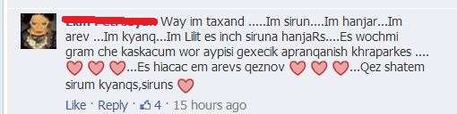 Խնդրեմ, կարդացեք այս քոմենթները, միայն ապշել կարելի է այսօրինակ սիրո դրսևորման վրա`