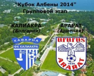 Բուլղարիայում ընթացող ֆուտբոլի «Ալբենայի գավաթ-2014» մրցաշարում այսօր տեղի են ունենում 2-րդ մրցափուլի հանդիպումները: Ֆուտբոլի Հայաստանի բարձրագույն խմբի ընթացիկ առաջնության առաջատար Երևանի «Արարատը» քիչ առաջ ավարտեց Բուլղարիայի Բ խմբի ընթացիկ առաջնությունում 4-րդ տեղում ընթացող Կավարնայի «Կալիակրայի» հետ հանդիպումը: Մրցամարտի ելքը վճռվեց խաղի 59-րդ րոպեին բուլղարացիների խփած միակ գոլը, որը տանտերերին 1:0 հաշվով հաղթանակ պարգևեց: