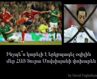 Երեկ, որոշեցի պատրաստել մի նկար, որում փորցում էի հասկացնել, որ չի կարելի պաշտել արմատներով թուրք Մեսուտ Օզիլին, որ ունենք մեր ուժեղ ազգային հավաքականը, որտեղ խաղում են պրոֆեսիոնալ, ուժեղ ու նվիրված ֆուտբալիստներ, այդ թվում նաև մեր առաջատար Յուրա Մովսիսյանը: Մեր ազգային հավաքականը Եվրո 2012-ի ընտրական փուլի բոլոր խաղերում բարցր է պահել մեր պատիվը, հնարավորություն է տվել ուրախանալու, համախմբվելու, մի բան, որը դժվար է անել մեր օրերում: