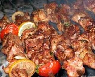 Ապա խոզի մեջքամիսը անցկացնել շամփուրի վրա, նույն շամփուրին շարել նաև չալաղաջը և կաքավը: Իսկ մրգերը խորովել ցանցի վրա: