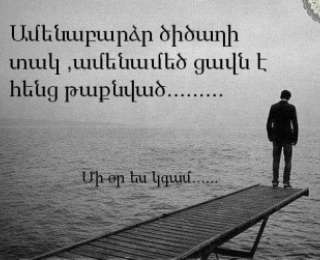 Մարդկանց ավելի շատ հաճելի է հանձնվելու միտքը, քան պայքարելու, մարդիկ երբեմն սովոր չեն հասնել հաղթանակի, քանզի կան մարդիկ, ում համար հաղթանակը, ավելին է քան կա...... Հաղթանակը այն չէ, երբ դու հաղթում ես, այլ իսկական հաղթանակը այն է, թե հաղթանակից հետո քեզ հետ ինչ է լինում ....շատերը դառնում է եսասեր, տարվում սեփական եսով. իսկական հաղթանակը այն է, որ ինչել որ լինի, դա կլինի հաղթանակ թե պարտություն, դու մնում ես այնպիսի ինչպիսին կաս, սակայն շատերը մոռանում են, որ հաղթանակին հասելեն նրանով, ինչով եղել են, դրա համարել հաղթանակից հետո սկսկվում է ցած գլորվելու պարտությունը ........... գլորվելը այն չէ, երբ դու կորցնում ես հաղթանակը, այլ այն, երբ դու հաղթանակից հետո կորցնում ես այն մարդկանց, ովքեր քեզ սիրել են ու եղելեն քո կողքին ..... Մարդիկ հաճախ են մոռանում մարդ մնալ, հաճախ մարդիկ աչք են փակում այն ժամանակ, երբ նրանց աչքերը տեսնում են, մարդիկ իրոք երբեմն մոռանում են մարդ մնալ ,մանվանդ այն պահերին, երբ իսկական մարդ է հարկավոր, դրա համարել մոռանալով մարդ մնալ ,նրանք հաճախ են իրենց ներսում կորցնում ՄԱՐԴԸ ....... ՄԱՐԴ, հապավում որն ավելի է թանկ է ,քան ցանկացած մեկ այլ բան, որն ԱՆԳԻՆ Է ........ Կյանք, հաճախ այն ուղղակի շփոթում են, անարդարության հետ, մարդիկ միշտ մոռանում են, որ ցավ են պատճռում այլոց,մոռանում են, որ կյանքը ստիպում է պատասխան տալ ..... մարդիկ վախենում են պատասխան տալուց, մարդիկ վախենում են այն նույնը զգալուց, որն ստիպել են զգալ մեկ այլ ուրիշին, իրոք երբ ցավ ես պատճառում, դու չես զգում, որ դա այնքան ցավոտ է, իսկ երբ արդեն կյանքն է քեզ ստիպում այդ ամենը զգալ, դու հասկանում ես, որ դու ամենադաժաննեիր, որ կարող էր լինել ...քանզի իսկական ցավը վերածվում է մի մութ սենյակի, իսկ այդ սենայկի պատերը ոչ թե ճնշում են քեզ, այլ քեզ ստիպում են դատարկվել, իսկ դատարկության ցավից, ավելի մեծ ցավ գոյություն չունի.......... Կյանքում ոչ ոք հենց այն պես չի ներխուժում մեր կյանք, շատերը մնում են մեր հոգու մեջ, իսկ շատ-շատերը դառնում են լոկ հիշողություններ, բոլորի գալու մեկ նպատակը երբեմն այն է, որ մեր կյանքը լցվի. երբ մարդկանց լքում են, լքված մարդը նույնպես աստիճանաբար սկսկում է լքել բոլորին, քանի որ լքողը ոչ ավելին էր քան ամեն ինչը, ու յուրաքանչյուրը ..... կյանքում ոչ ոք հենց այնպես մեզ չի գալիս այցի ,ինչ որ մեկը գալիս է ,որ դու հասկանաս, ինչ որ մեկը մեզ լքում է, որ ապրել սովորենք ,ինչ որ մեկը մեզ երջանկացնում է ու հետո ցավ պատճառում, որ հասկական թե երջանկության ,ու թե երջանկության բացակայության գինը .... կյանքը մի մեծ պարզություն է ,որտեղ խորասուզվելով սկսկում ես հասկանալ ,որ դու այնքան փոքր ես ,որ չես կարող անգամ հասկանալ նման պարզ պարզությունը ..... ցավը երջանկության բացակայությունը չէ ,ցավը մի գիրք է ,որից դու սովորում ես, ապրել, գիտակցել, հասկանալ ու ամենակարևրոը լռել այն ժամանակ երբ պետք է չէ խոսել ,կանգնել այնտեղ որտեղ պետք չէ շտապել,ու ամենաից լավ կողը ցավի այնէ ,երբ դու այն զգալով սկսկում ես դադարել ցավ պատճռել ուրիշններին... մի վախեղեցեք ցավից ,քանզի այն ձեզ չի սպանում ,այլ նա սպանում է ձեր ներսում կուտակված ձևականությունը ,ձեր ներսում կուտակելով իսկական իրականությունը ,իրականությունը այն է ,ինչ ցավը մեզ ստիպում է զգալ .......... Կյանքը գեղեցիկ է ,ու իրավացի ինչել որ լինի ,երբեմն նա սխալվում է ,բայց սխալվում է երբեմն ,իսկ հաճախ նա ճիշտ է վարվում .......... Եթե դու կարող ես ,ուրեմն արա, մի կանգնիր այնտեղ ,որտեղ քո բոլոր զգայարանները ուզում են վազել,բարձրաձիր միշտ ,մի վաղեցիր ընկնելուց, քանզի ընկնելը քեզ ստիպում է հասկանալ ,ովքեր են քո ընկերնները ,և ով իրական թշնամինները, մի վախեցիր ինքդ քո մեջ զգալուց պարտությունը ,քանի որ հեն