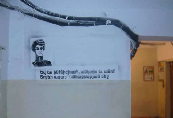 Ոստիկանը 10-15 անգամ կարդաց «ըմբոստի համար պատրաստ եմ կյանքով», «էրթանք, քուրիկ ջան, անվախ, միասին, մեր արդար դատին զոհած ամեն բան», բայց չհասկացավ՝ քաղաքական կո՞չ էր դա, թե՞ ոչ ու ով է ընդհանրապես Շուշանիկ… ինչյանը՞… Կուրղինյանը: Բայց համենայն դեպս ջնջեցին տողերը շատ զզվելի գույնի մի ներկով ու մեզ էլ, պարզվեց, տուգանք է հասնում: Ասաց՝ Պարույր Սևակ փչեիք՝ կհասկանայինք…