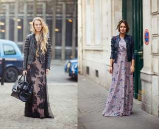 Առաջին նկարում Դուք տեսնում եք 2 լեդիների, որոնք գետնին հասնող նուրբ զգեստները կրում են կաշվե բաճկոնակի հետ: Անկասկած, հարմարավետ և միևնույն ժամանակ պրեզենտաբել լուծում է, երբ դրսում խաղում է չարաճճի գարնանային քամին: Արդեն գարուն է, այնպես որ «Возьмите на заметку».