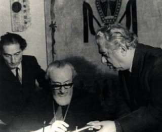 Ա.Խաչատրյանը և կոմպոզիտոր Ադամ Խուդոյանը կաթողիկոս Վազգեն Առաջինի մոտ