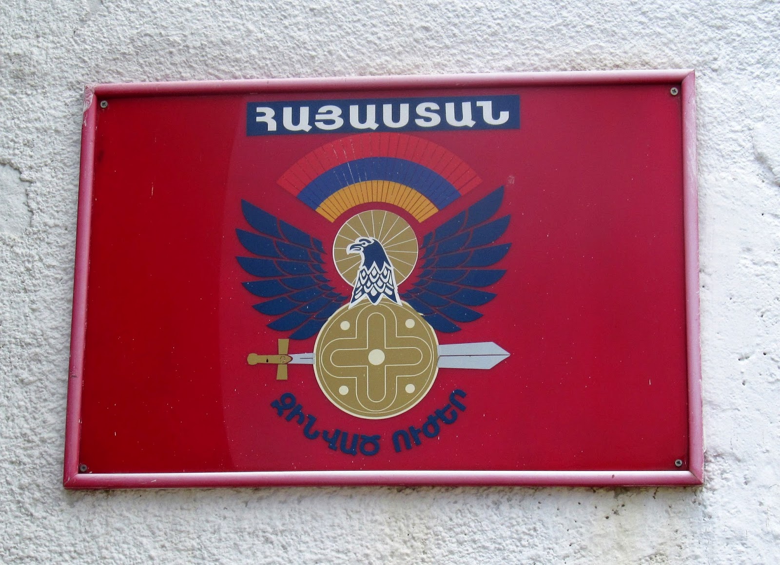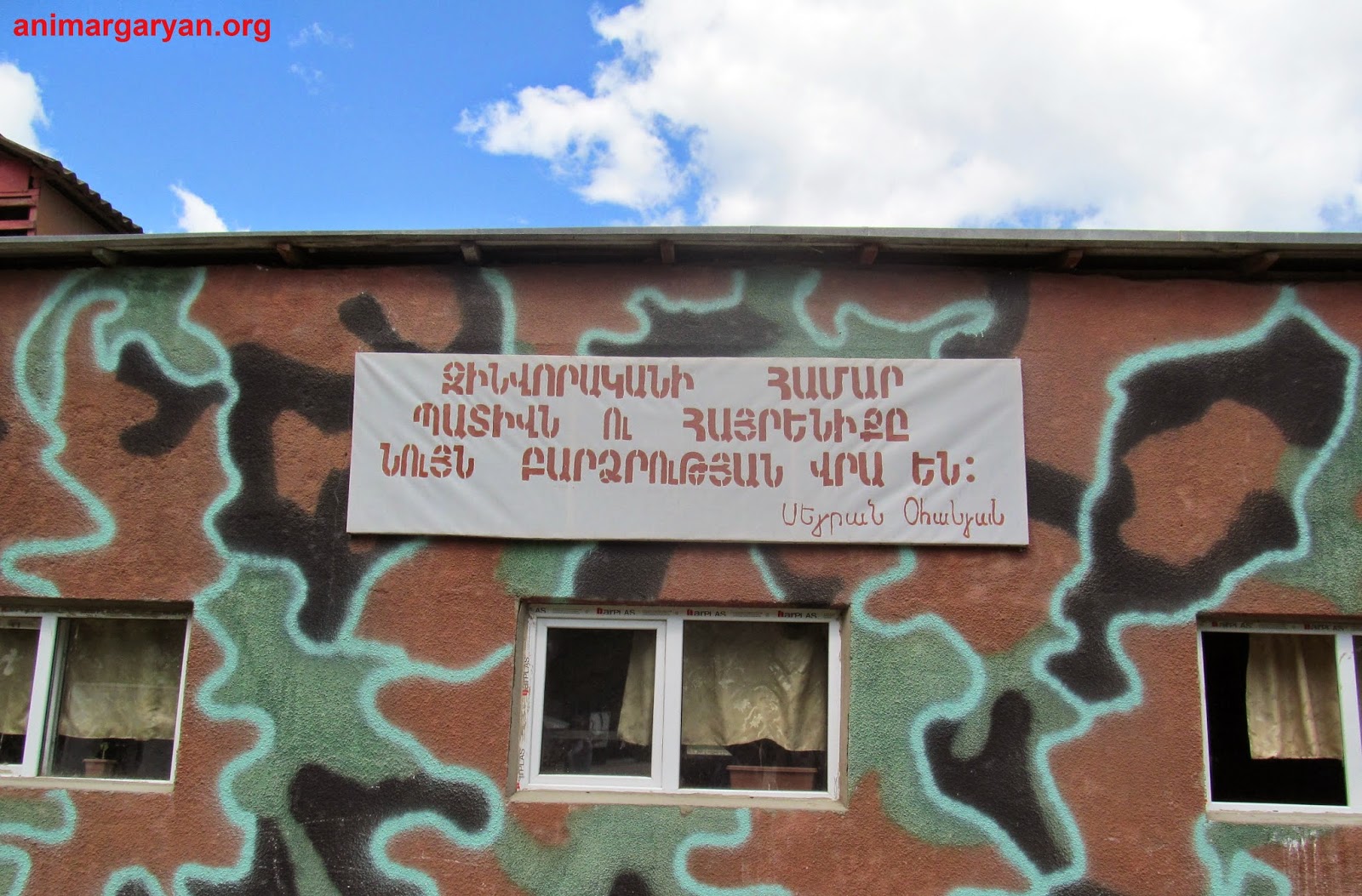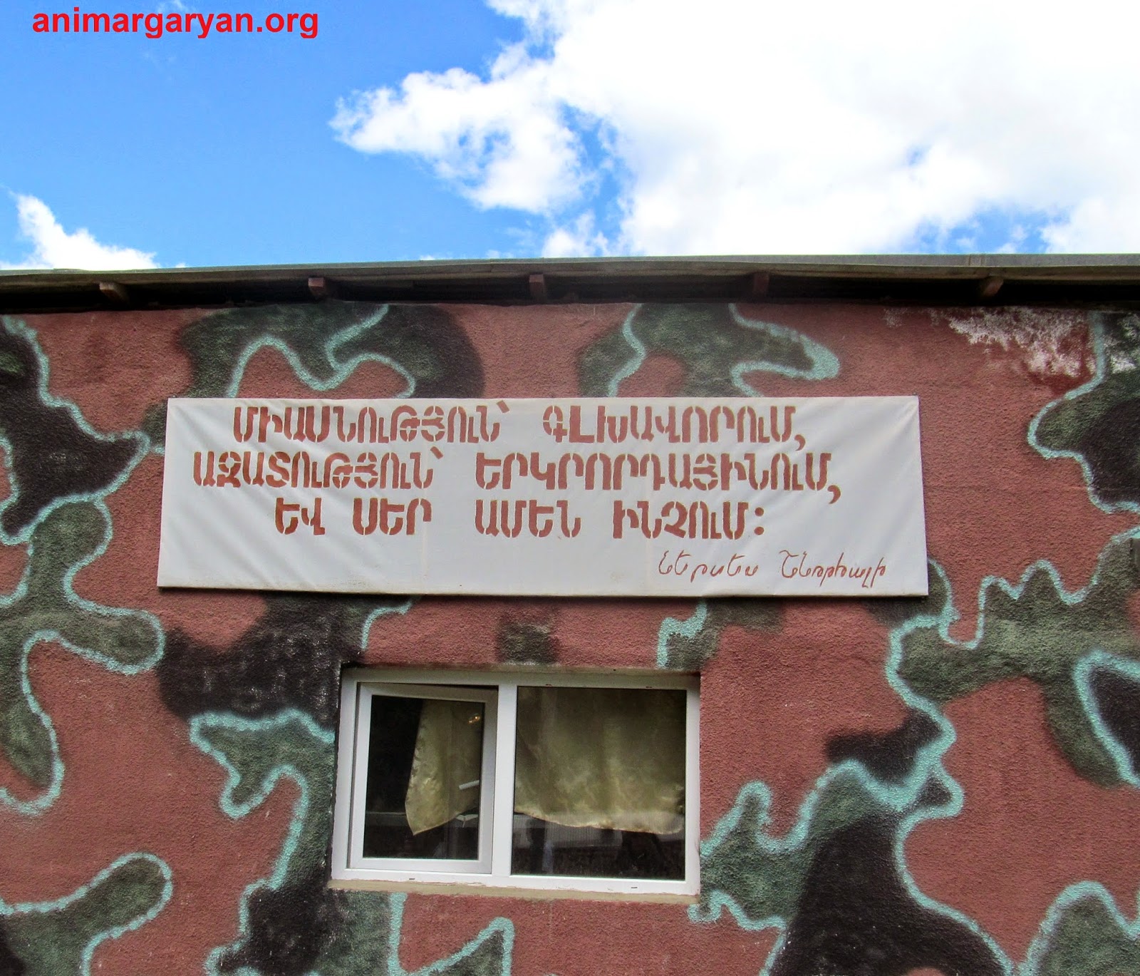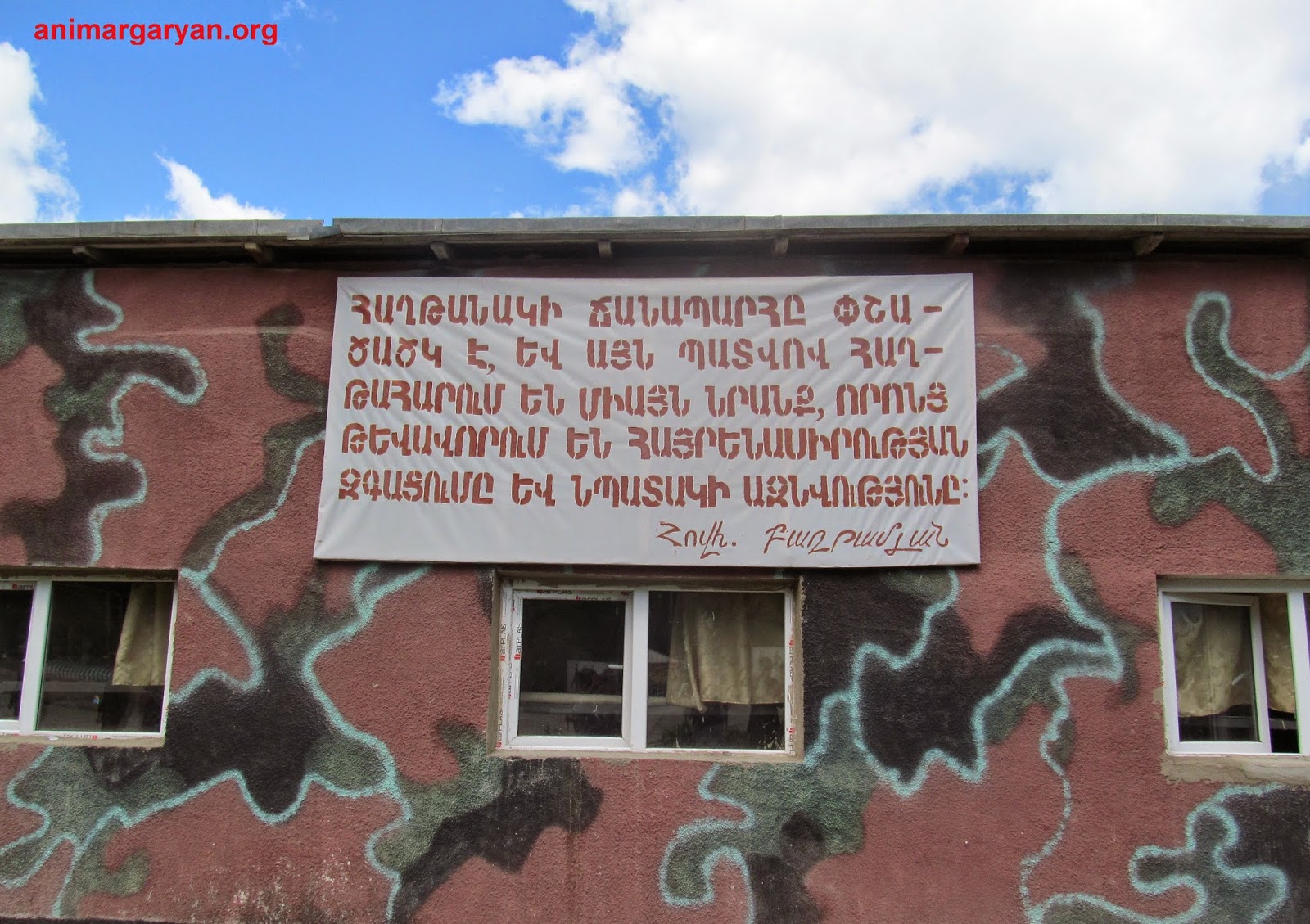 Այսպես, զորամասի մուտքի մոտ բանակի հիմքում կանգնած Հայոց Սպարապետի` Վազգեն Սարգսյանի լուսանկարն է, դրան կից գրված է.