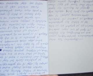 «Լսիր բախտակից ընկեր եթե նեղնես վատ մի զգա գալույա պահը ազատության: դառը օրերը կգան ու կեթան: մի նեղացի քո բախտից քանի վոր կա ազատություն թռչունի պես կճախրես ազատ երկնքում ու կվայելես այն ինչ ուզում էս: այս ամենը մարդու համար է: միյայն վատ նրանում է վոր երիտասարդ օրերը չես վայելում ազատություն: Ես սա գրում էմ իմ կյանքից քանի որ ես ել եմ այդպեսին իմ լավ երիտասարդ օրերը անցեմ կացրել գաղութներում որը երփեկ ետ չեն դառնալու ամբողջ կյանքում հուշ են դառնալու տարբեր գարնան ծաղիկներ չեմ քաղել ծաղկից հոտ չե քաշել բայց չեմ նեղվել երևի իմ բախտ է այդպիսի: Շատ մի նեղվի իմ ընկեր լավ օրերը առջևում էն համփերություն քես իմ ընկեր: մեզ ճանաչում են ձույնոտ լեռները կապույտ սեվանը: չե չենք ծերացել մազերս էն ճիրմակել միքիչ կրկին կլինենք ազատություն: ավախ արթեն ծերացած ծերության դուռը մենք չենք թակել բայց ինչպես կռունկ մեր երամից ետ ընկանք ինչու այսպես նզով եղավ մեր կյանքում ինքս էլ չգիտեմ ճակատագիրնե այսպիսի չեմ բողոքում իմ կյանքից ազատության մեջ վայելել եմ ինչ ուզել եմ 47 տարեկան եմ 50 ամյակս գաղութում կանեմ, իսկ 60՝ տանը իմ թոռների հետ երեվի, բայց դա դեռ չունեմ համբերություն և ազատություն բոլոր նեղ մարդկանցը…»: