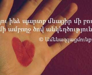 Վաճառել ես մեր սերը, գնել թվացյալ հպարտություն...Իսկ իմ սերը չի վաճառվում՝ անգին է, ավելի թանկ, քան քո էժանագին հպարտությունն է:
