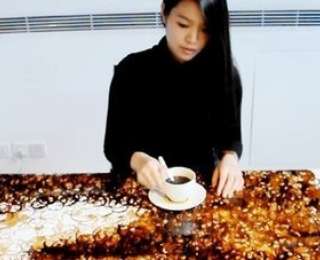 Red անվան տակ հանդես եկող տաղանդավոր նկարչուհին իր նկարները նկարում է սուրճի բաժակով, բասկետբոլի գնդակով և արևածաղիկի սրմերով: