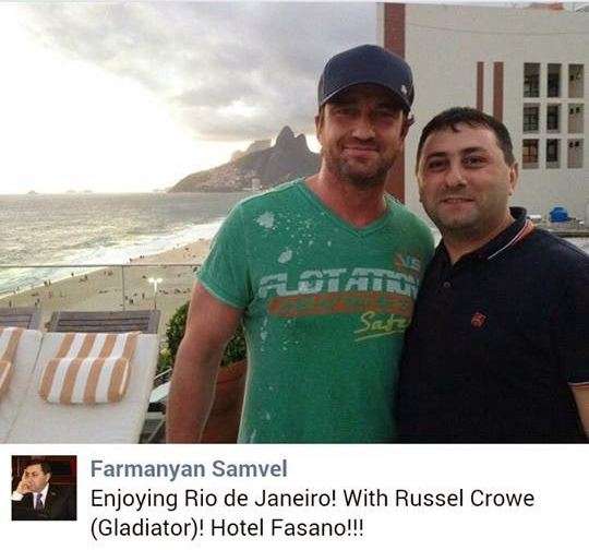 Այսօր հայկական ֆեյսբուքի նոր թրենդը «Enjoying Rio with ...» մեմն էր, որը սկսեց այն բանից, երբ Սամվել Ֆարմանյանը ֆեյսբուքյան իր էջում հրապարակել էր լուսանկար՝ հայտնի հոլիվուդյան դերասան Ջերադ Բաթլերի հետ, բայց վերնագրում խառնել ու գրել էր «Enjoying Rio de Janeiro with Russel Crow (Gladiator)! Hotel Fasano»...