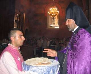 Մեր Եկեղեցին ունի Պատարագին օգտագործվող երկու տեսակ հաց՝ նշխար և մաս: Նշխարը խաչի պատկերով փոքրիկ կլոր բլիթ է, այն գործածվում է Սուրբ Հաղորդության Խորհուրդը կատարելու համար:
