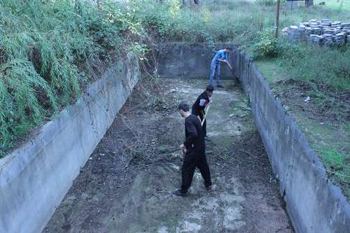 Մաքրում ենք լողավազանը, որ սկսենք վերանորոգումը։ Կռվի ժամանակ լողավազանի մի մասը պայթեցվել է և դա էլ պետ է վերանորոգենք։ Այն մոտ 40 մ երկարություն ունի։