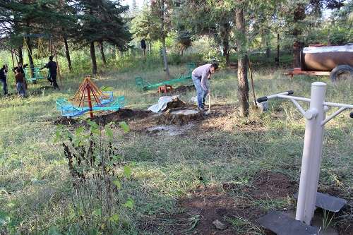 Սկսում ենք բեռնատարները դատարկելը ու խաղահրապարակ կառուցելը։