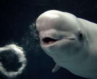 Ճապոնական Սիմանե ակվարիումումի սպիտակ կետը սովորել է օղակի տեսքով պղպջակներ բաց թողնել եւ զարմացնել հաճախորդներին:):