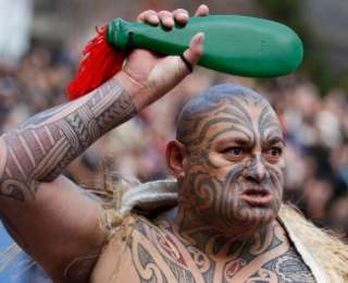 Լուսանկարը՝ Reuters /Նոր Զելանդիայի բնիկ Մաուրի ցեղի ներկայացուցիչը պարում է ազգային «Մարտիկների պարը» Ռեգբիի աշխարհի առաջնության շրջանակներում/