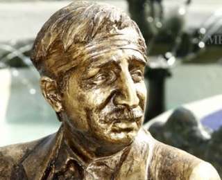 Երեւան: Մեդիամաքս: Երեւանի Շառլ Ազնավուրի հրապարակում` "Մոսկվա” կինոթատրոնի դիմաց, այսօր տեղադրվել են Եղիշե Չարենցի եւ Մհեր Մկրտչյանի արձանները` «01-99» ֆիլմի հայտնի տակառիկով:
