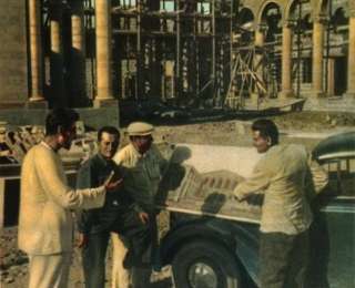 1950 թվականին «Օգոնյոկ» հանդեսի համարներից մեկում տպագրվել է այս լուսանկարը, ուր պատկերված է, թե ինչպես է կառուցվում Էջմիածնի մշակույթի տունը: Իսկ մյուս նկարում նույն շինությունն է տասը տարի անց: